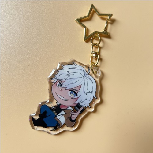 Game Character Glitter Epoxy Keychain is a decorative keychain with the theme of characters in video games. There are 4 keychains in the pictures, each of which has different shapes and actions, but all use glitter effect. The design theme of this keychain is different characters from video games, and it can also be characters from different games, such as e-sports, role-playing games, action games, etc. Characters may be representations of main characters, villains, or special abilities. The added glitter effect means that under the light, the surface of the keychain will produce a sparkling effect. This is usually achieved by adding glitter or glitter particles during the fabrication process, adding to the visual appeal. Perfect for displaying personal interests and hobbies, or as a gift for gaming fans. Its glitter effect makes it even more visually striking.
