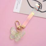 Butterfly Acrylic Keychain, its acrylic material makes the butterfly keychain transparent to show the patterns or decorations inside. This feature makes customized butterfly keychains more attractive and adds a unique element to personal style or branding image. The butterfly keychain comes with a keyring and wrist strap, making it easy to carry keys or other small items together. The total weight of the keychain is 7.5g, the width of the acrylic butterfly is 4.5cm, and the length of the wrist strap is 8cm. They can be used as keychains, charms or decorations, making them not only functional but also decorative.